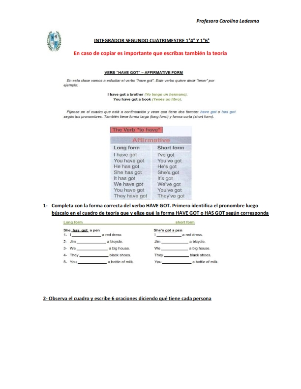 1° 4° y 1° 6° - Prof. Carolina Ledesma